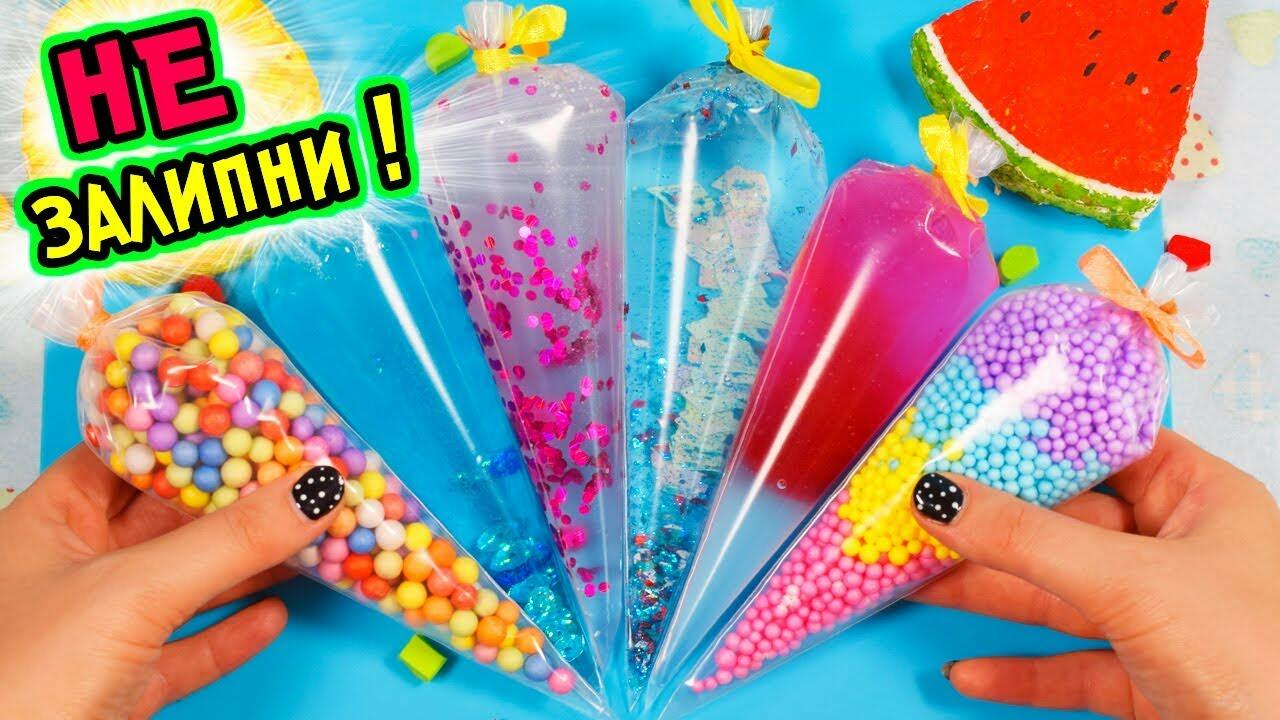 Ребята, сегодня НЕОБЫЧНЫЙ рецепт СЛАЙМА БЕЗ тетрабората. Покажу, как СДЕЛАТЬ СЛАЙМ в домашних условиях залипательным способом. Посмотрев этот ролик, ты узнаешь, как сделать слайм без тетрабората натрия. Ну, а перед началом видео показу красивый слайм, который мы сделали в прошлом видео. Прозрачный слайм выглядит просто потрясающе. Большинство из вас проголосовали за то, чтобы я перемешала его. Настоящее залипательное видео. Слайм кликает просто бомбезно. А его цвет просто невероятно красивый. Для этого хрустящего слайма я подготовила все ингредиенты в кондитерских мешках. Попробуй не залипни. Этот слайм из канцелярского клея, поэтому первый конвертик с канцелярским клеем. Я сразу его окрасила. Я очень люблю слаймы из канцелярского клея, они прозрачные и отлично хрустят. Сделаю большой слайм поэтому будет два мешочка с клеем. Еще для объема добавлю маску пленку. Слайм из маски пленки очень напоминает слайм из клея. И еще два мешочка с пенопластовыми шариками. Слайм с пенопластовыми шариками очень хрустящий. Называется он кранчи слайм. Поскольку я делаю слайм без тетрабората натрия, буду использовать другой загуститель. А вот какой это загуститель догадайтесь сами. Жду ваши версии в комментариях. Получился самый хрустящий слайм, который я делала. Он хрустит от малейшего прикосновения настоящий слайм асмр. Получилось залипательное слайм видео.