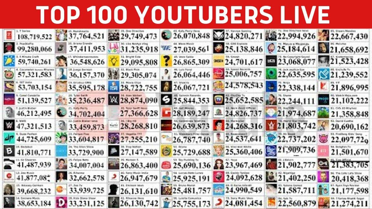 Top 100 YouTubers Worldwide Live subscriber count! PewDiePie Vs T Series Vs MrBeast and other 97 YouTube Channel with Vevo. In this Livestream, we have 100 of some of the most famous YouTubers in the world! please help me to get 10K Subs. Thank for watching