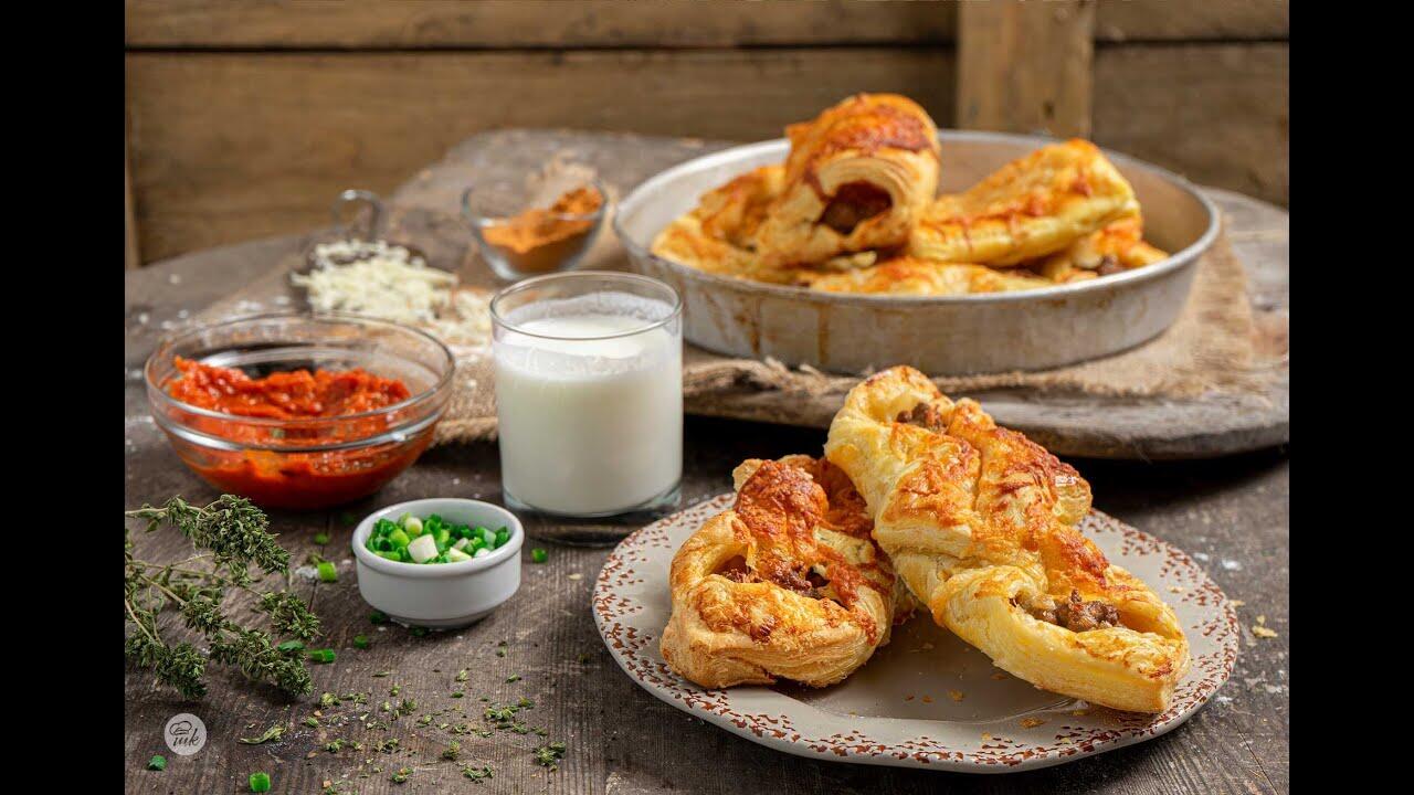 In this video you will see step by step how to prepare this irresistible recipe for puff pastry with beef sausages.