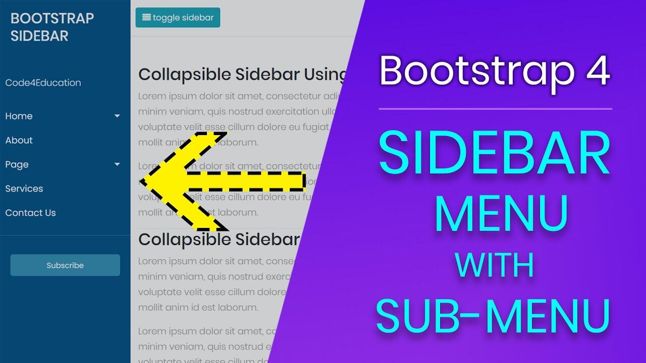 In this tutorial, You will learn How To Create Bootstrap 4 Sidebar Menu Responsive with Sub menu and Create Responsive Side Navigation Full Tutorial In Hindi Easy and Fast! (CODE4EDUCATION)