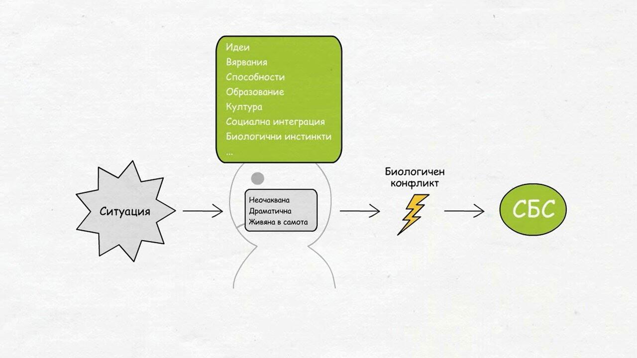 В тази част показваме как една Смислена Биологична Специална Програма започва в отговор на конкретна ситуация, възприета от индивида като биологичен конфликт, процес, описан в Първия Биологичен Природен Закон. Изследват се съдържанието на конфликта, както и синхронността на 3те нива.