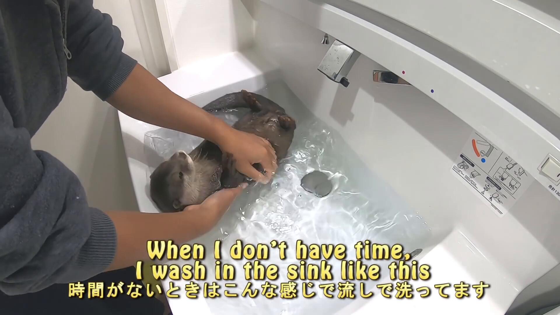 Washing Aty's body [Otter life Day 134] アティの沐浴