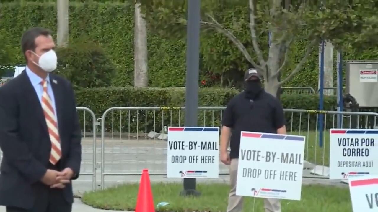 President Donald Trump speaks to reporters after voting in West Palm Beach