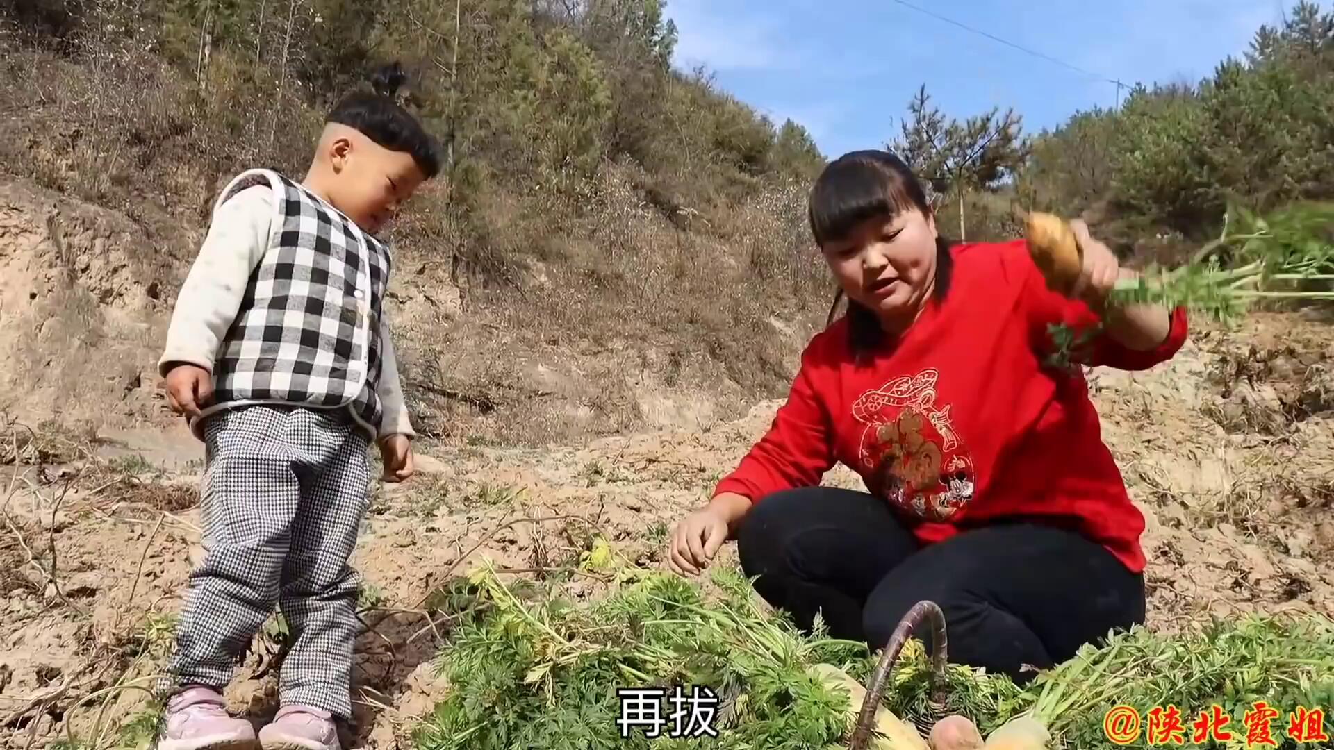 【陕北霞姐】5个黄萝卜2斤猪肉,今天做“黄萝卜饺子”,浇上柿子酱吃,就是小时候的味道!