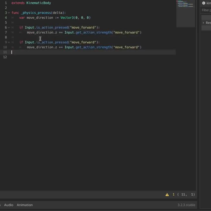 How to create a kinematic character that can move and strafe with Godot in less than 60 seconds