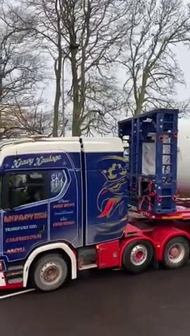 Colossal wind turbine blades manoeuvre in convoy through Highland village