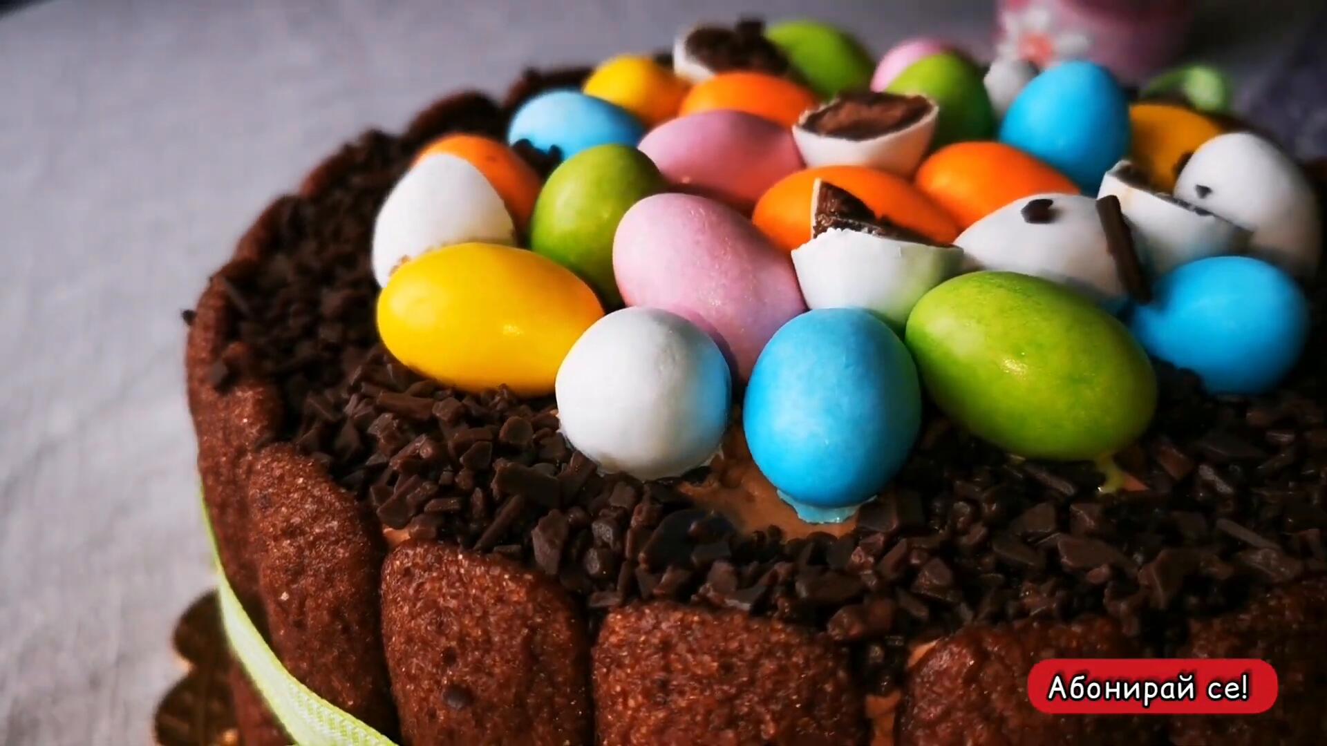 Празнична торта(чийзкейк) Лесна рецепта без печене, крем маскарпоне, декорация с великденски яйца