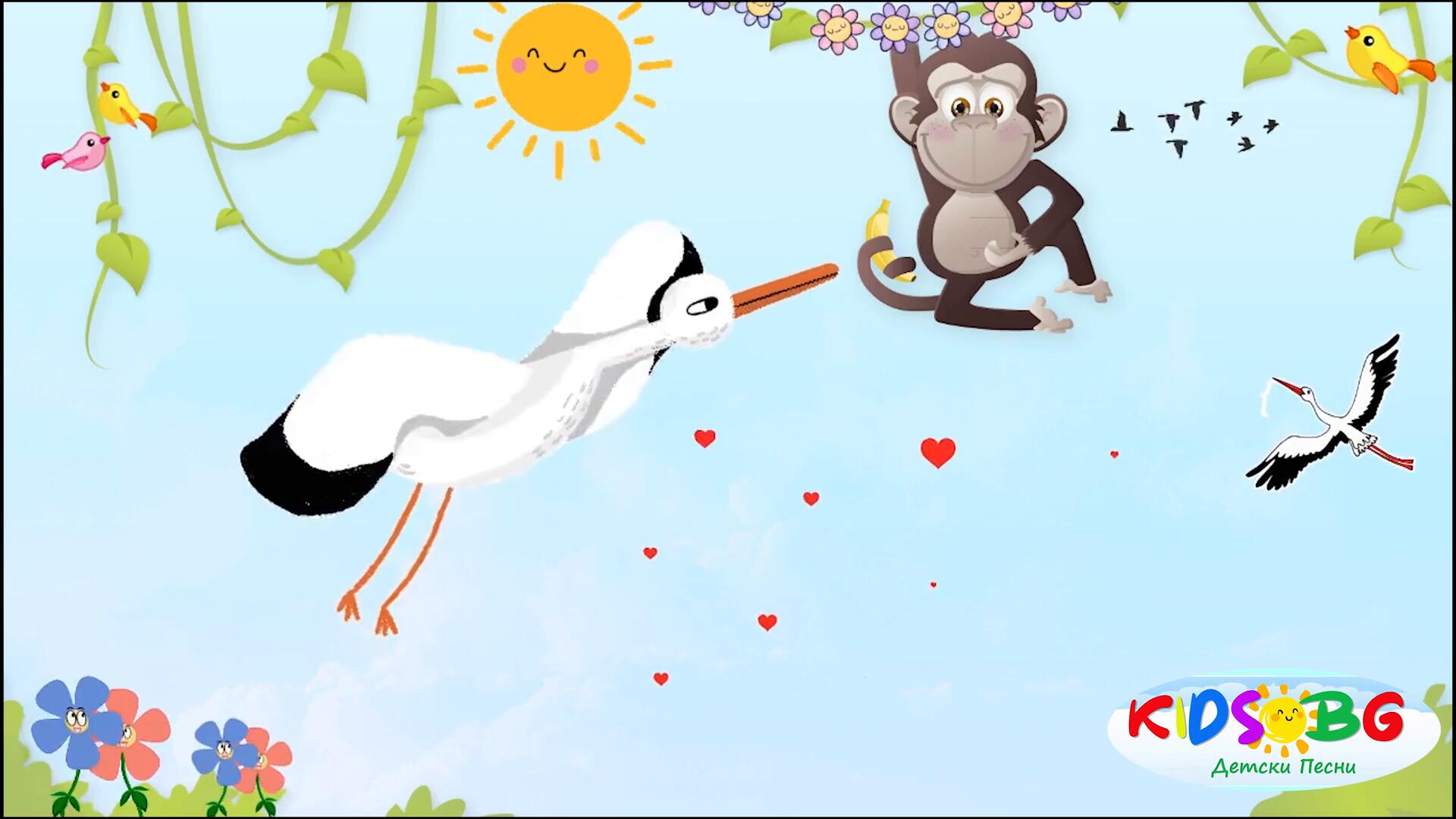 Щъркел шарен дългокрак - Детска песничка