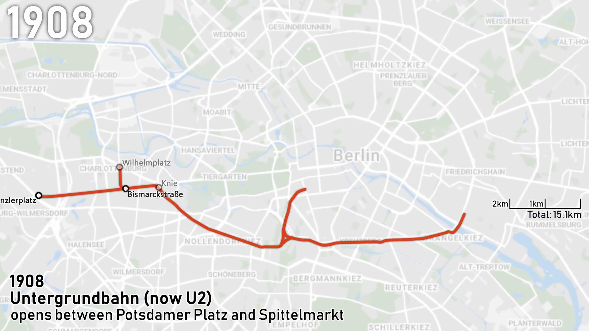 Berlin's rapid transit system (U-Bahn, S-Bahn) expansion animated 1902-2021