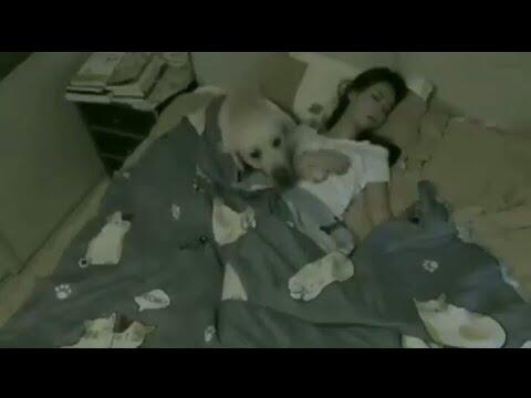 Dogs cares most about us even in night as you can see, how good is relationship between this dog and girl.