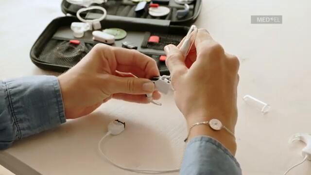 Adult children the cable and the connection in MED-EL Good clothes and t-shirt connecting cochlear implant color brown dark glitter. Vivi clothes so far inside clothing and sports example run and scooter bike wheel !?