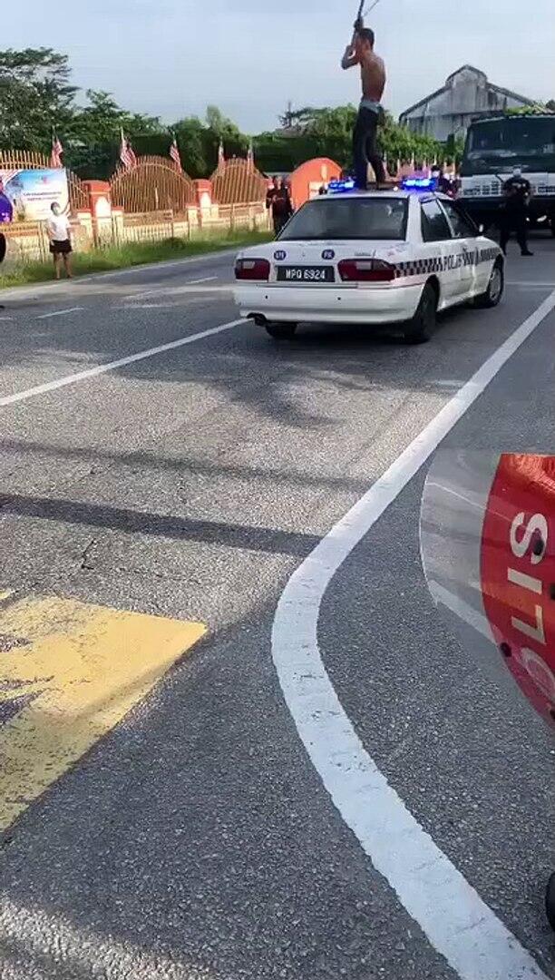 A 61-year-old man, high on drugs, runs amok with a machete and a long sickle at the main road Jalan Ipoh-Kuala Lumpur near the Gopeng Police Station, Kampar.