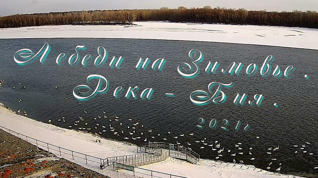 Лебеди на Зимовье - река - Бия 2021г.