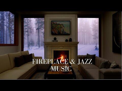☑️ Enjoy this amazing cozy cabin Winter Fireplace with Jazz Music.