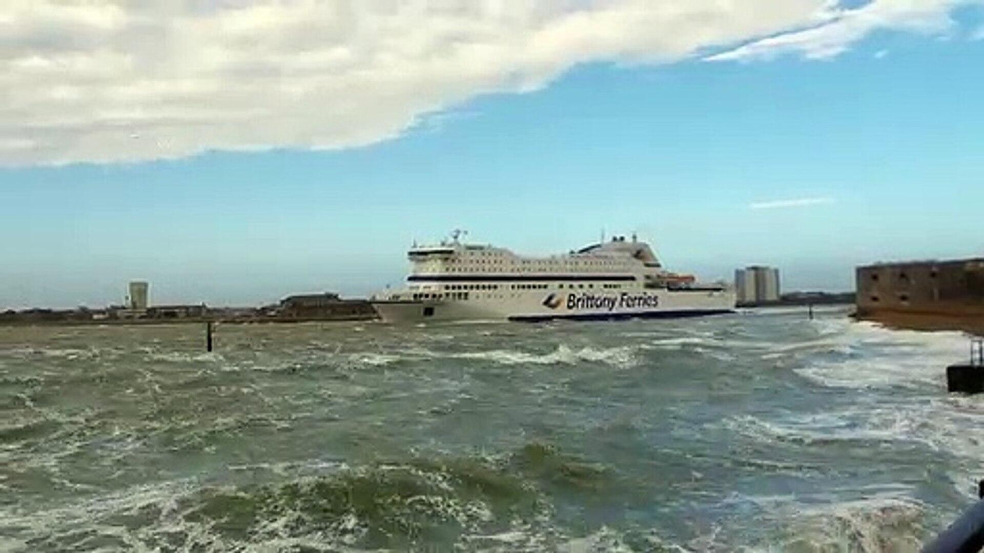 Brittany Ferries ship braves the waves during Storm Eunice