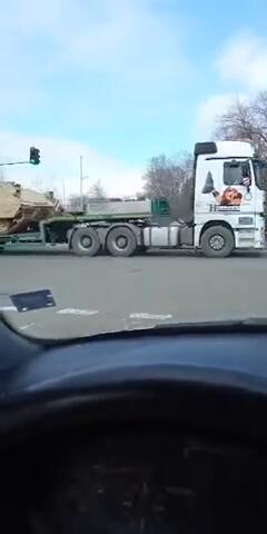 Танковете на платформи и военна полиция в Карнобат - сега 02.03.2022г.