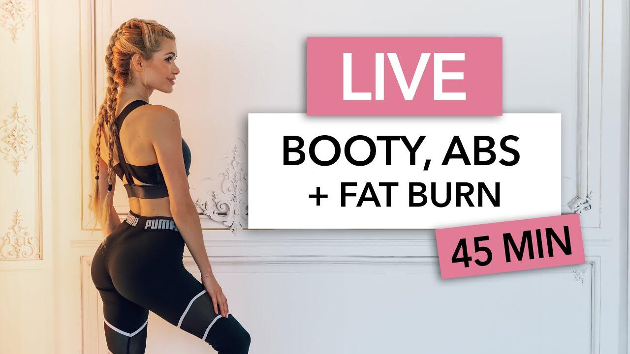 We start with "15min Sixpack", continue with "10min Glute Activation" (grab a booty band if you have one), followed by "10min Legs + Fat Burn" aaaand we will slow down with a 5min Stretch. You can also do those videos separately on my channel!