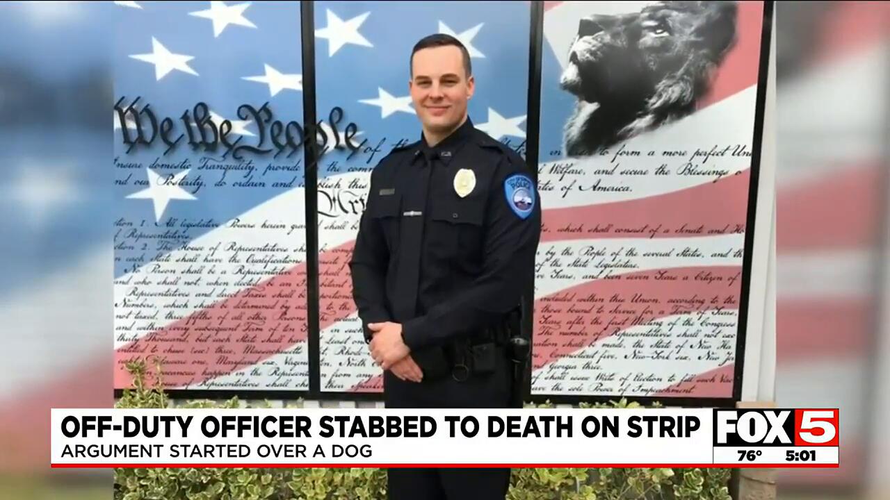 Suspect allegedly stabbed police officer after he pet dog aggressively, Las Vegas police say