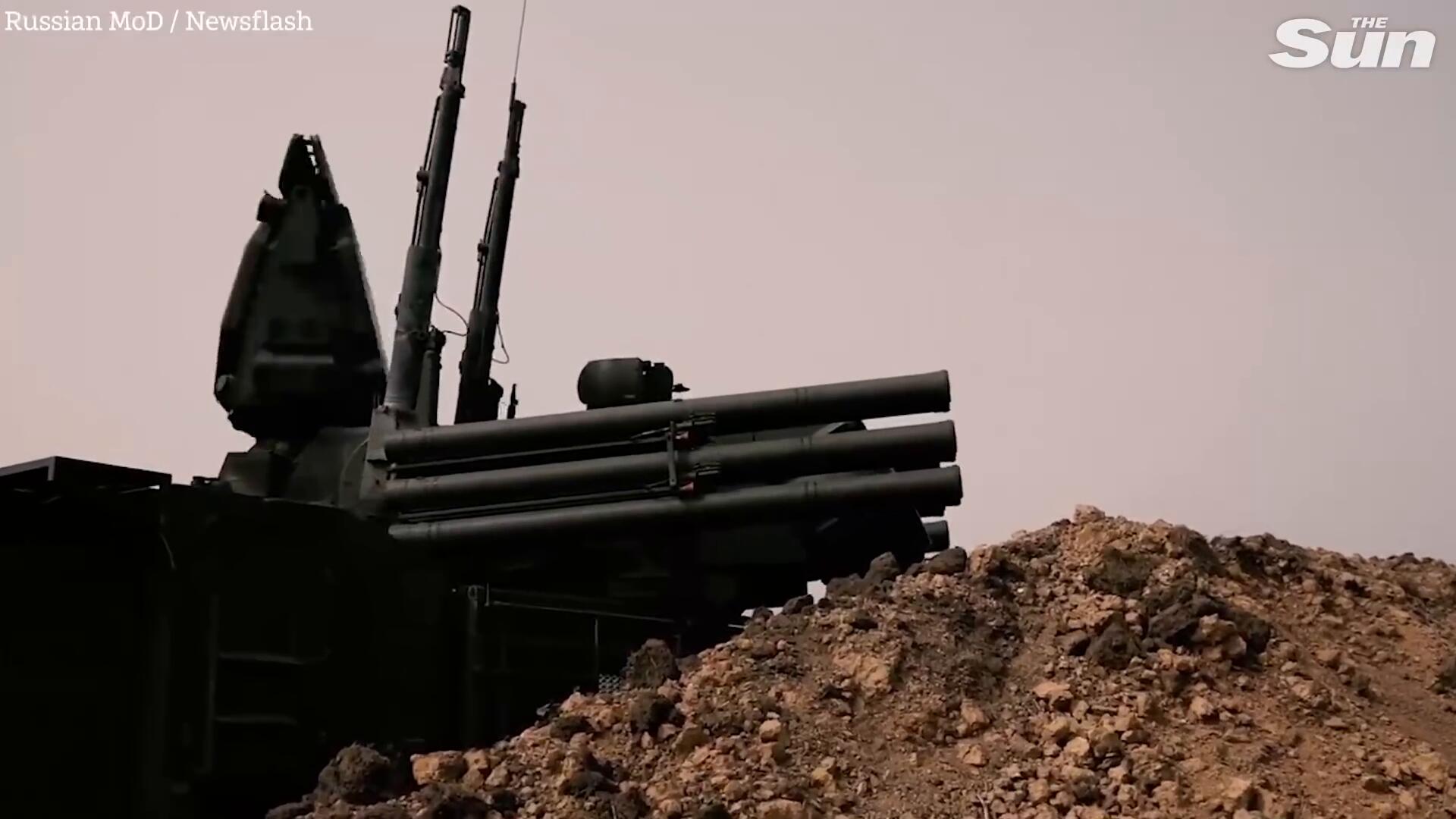 Russian anti-aircraft vehicle fires missiles in the sky in propaganda video