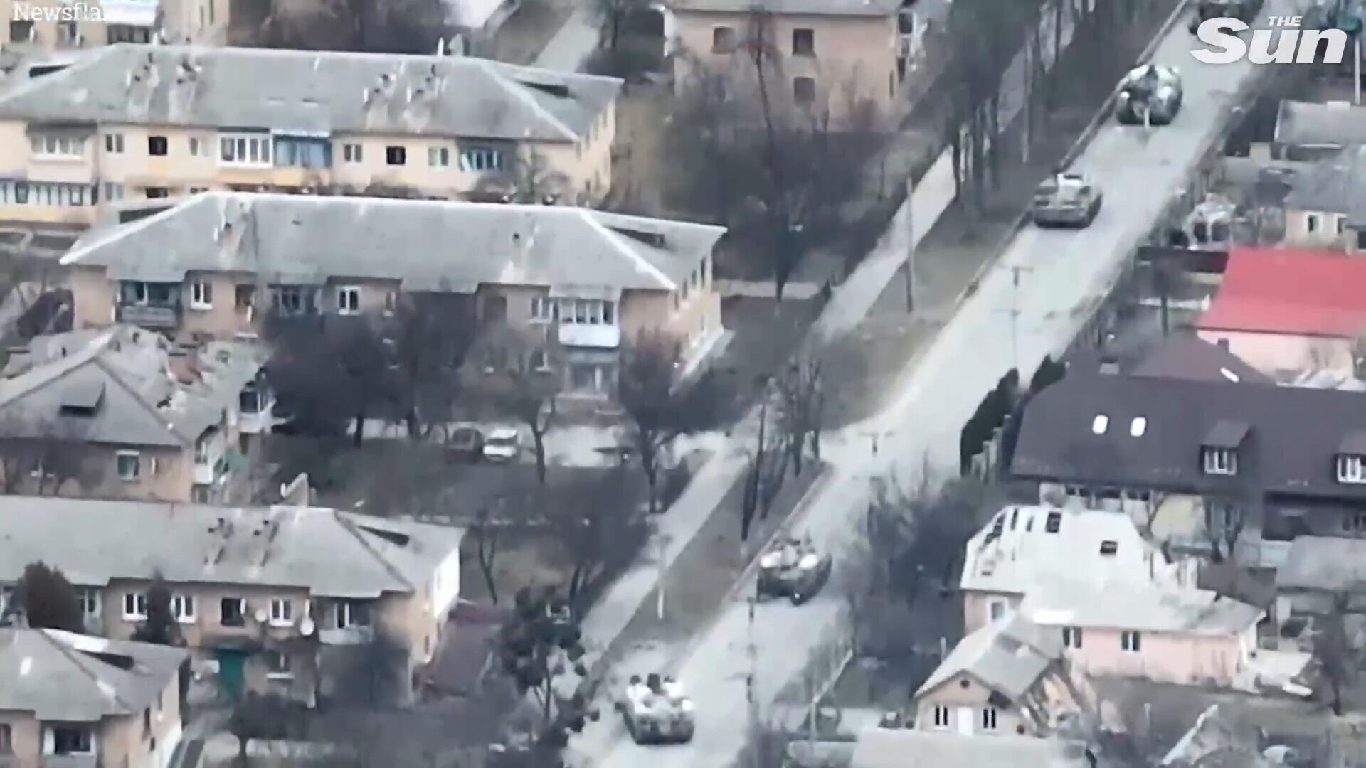 Russian 'Z tank fires at a civilian cyclist' in Bucha, Ukraine