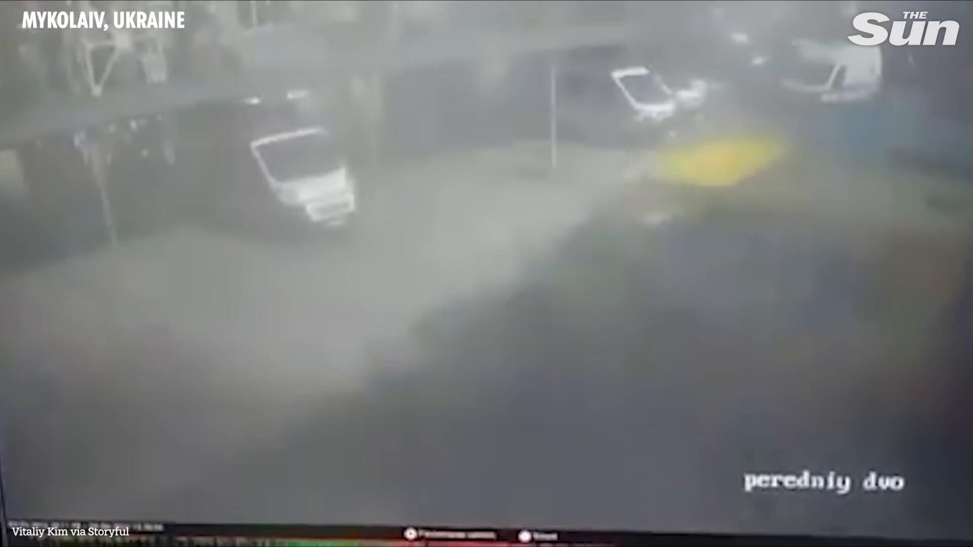Moment strike 'destroys ex-NHS ambulance' at hospital in Mykolaiv, Ukraine