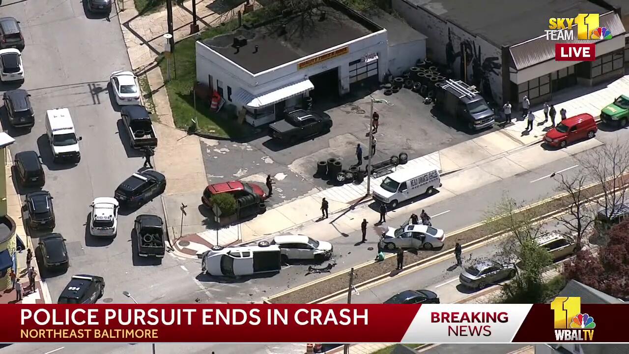 LIVE: SkyTeam 11 is over a car that crashed after a police pursuit in northeast Baltimore - wbalt…