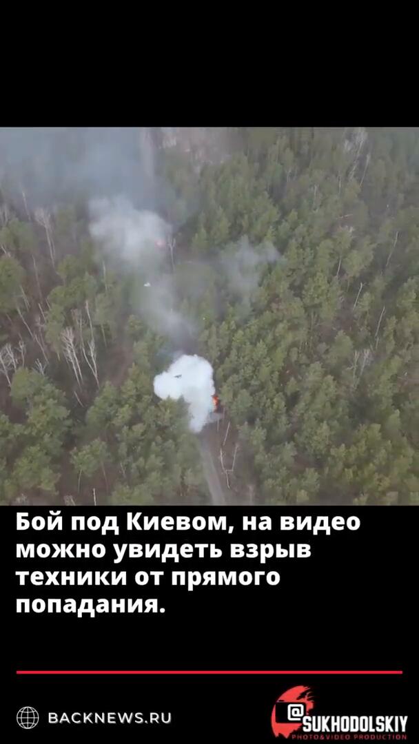 Бой под Киевом, на видео можно увидеть взрыв техники от прямого попадания