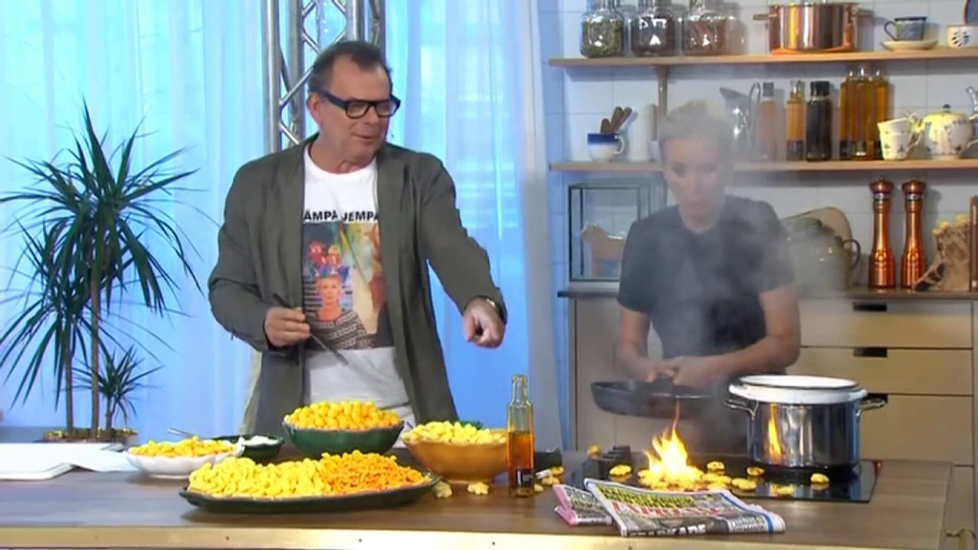 Television host celebrates "Cheese Doodle Day" and everything catches fire!
