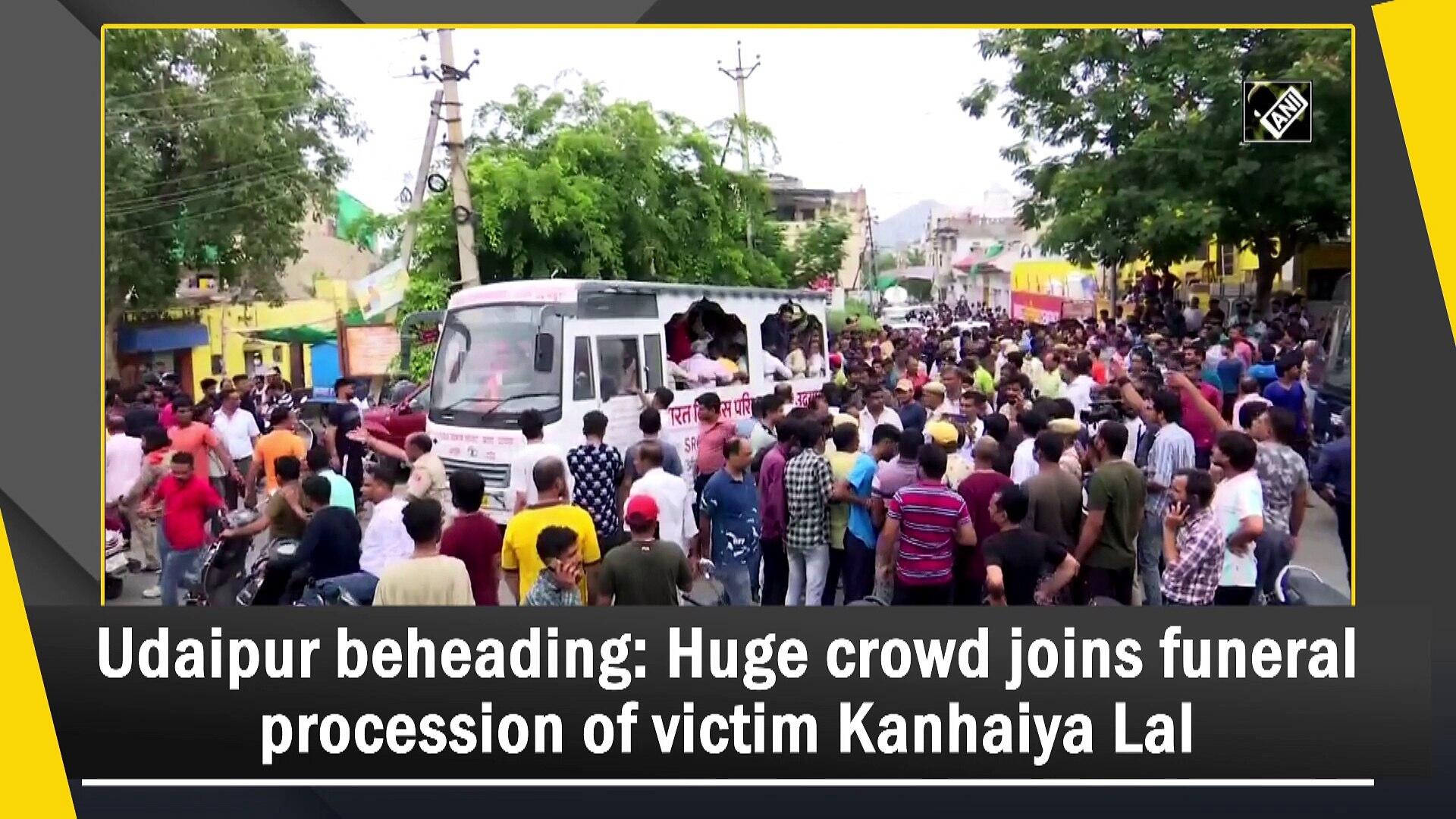 Huge crowd joined the funeral procession of Udaipur murder victim Kanhaiya Lal Teli at his native place on June 29.