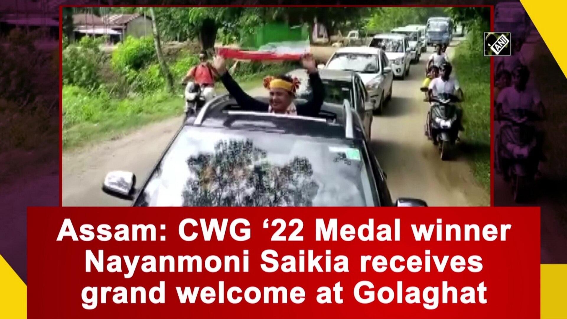 Nayanmoni Saikia, a member of India's Lawn Bowls team that won Gold in the Commonwealth Games, was welcomed at her native place in Golaghat on August 16.