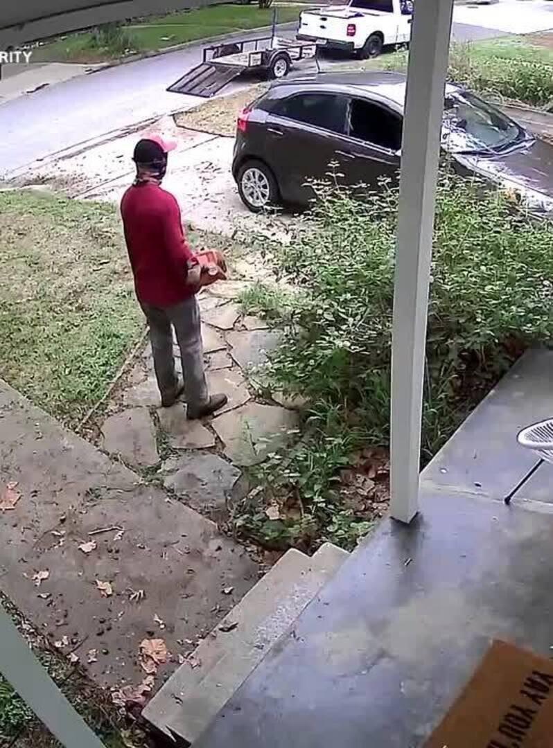 This guy was trimming the grass in front of the house and accidentally broke the glass of the car parked there. He decided to leave without informing anyone of the damage and was only discovered later.