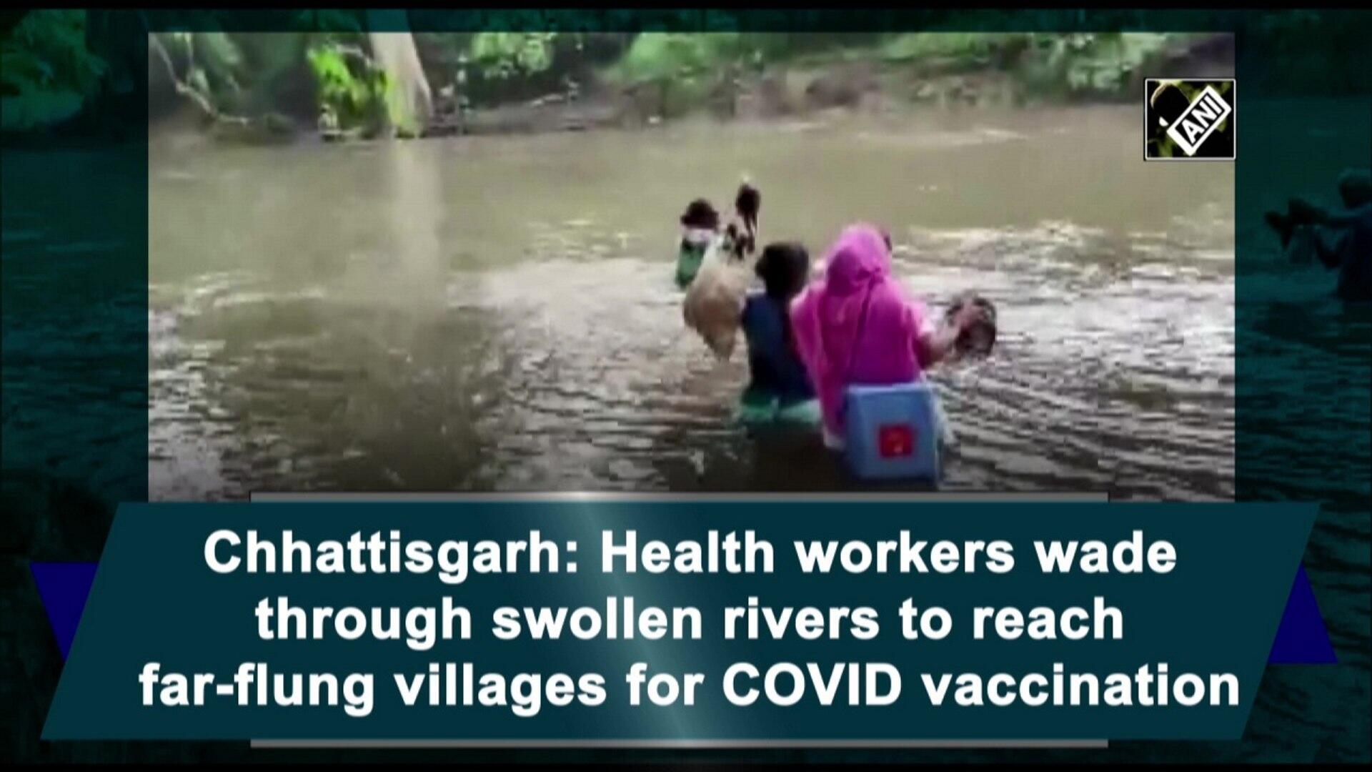 The health department team waded through three swollen rivers to reach far-flung villages for Covid-19 vaccination. Health workers conducted Covid-19 vaccination in villages of Marudbaka, Lingapur and Nela Kanker in Bijapur district. The water level of the 3 rivers was on a rise due to rains. The distance between Community Health Center to Sub Health Center Marudbaka is about 30 km.