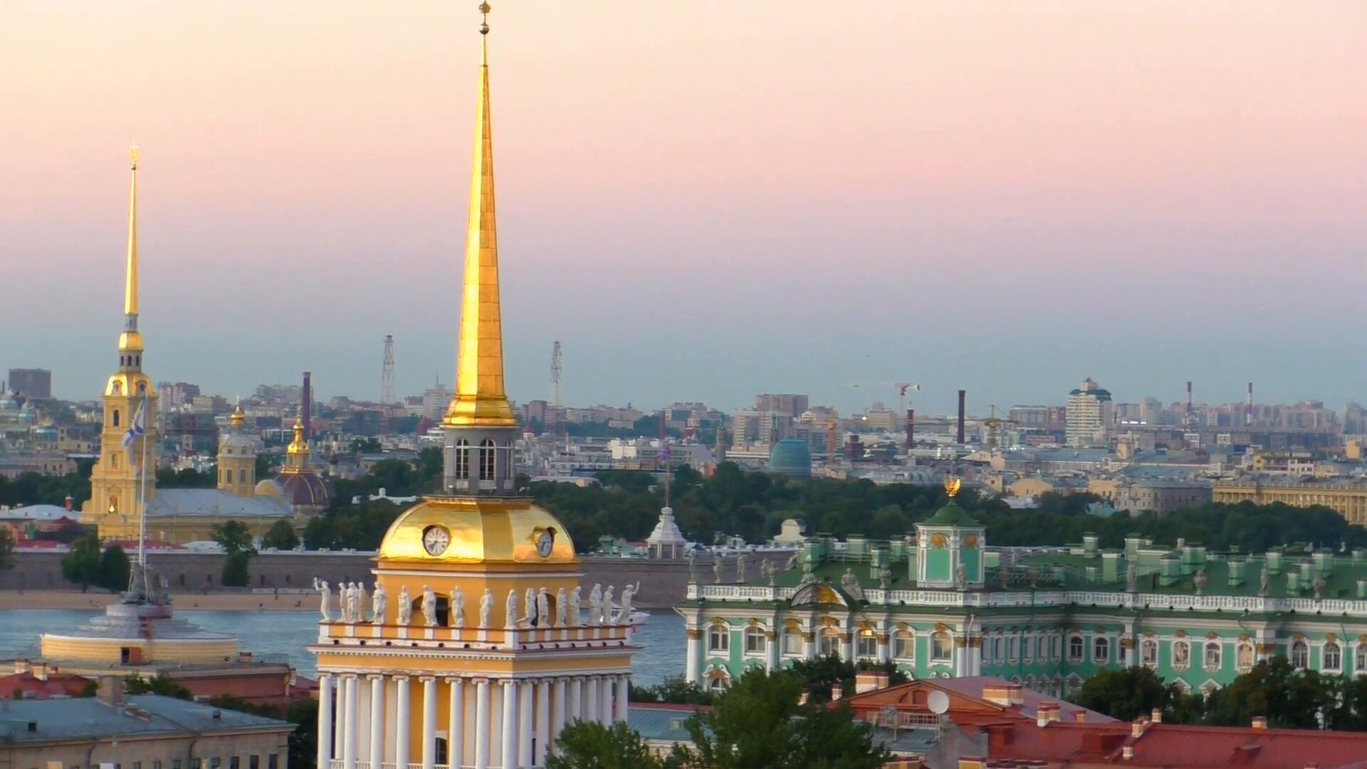 Красивый закат с Колоннады Исаакиевского собора в полнолуние...