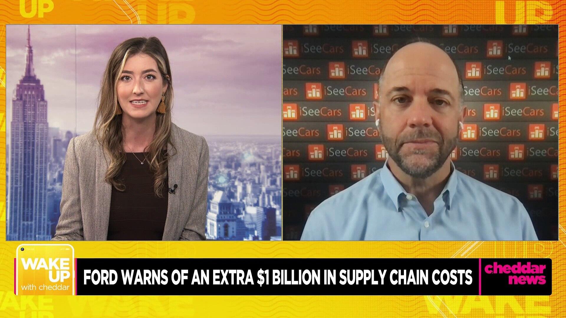 Ford shares fell Tuesday on their warning over the impacts of increased supply chain costs and inflation. In the announcement, the auto giant is estimating an extra $1 billion in supply chain costs. Karl Brauer, an executive analyst from iSeeCars.com, joined Cheddar News to discuss the current auto market and the announcement from Ford Motors. He gave his predictions on the timeline of the supply chain issues. how long the overall down trend in the auto industry will continue, and the price impact on the consumer shopping for a new car "that's the real concern is that we're gonna have to keep seeing prices elevate. We've already been seeing them elevate for the past year or more.” As consumers are feeling the compounded impacts of all these increased costs, as car prices have surged, this is the beginning of buyers getting priced out.