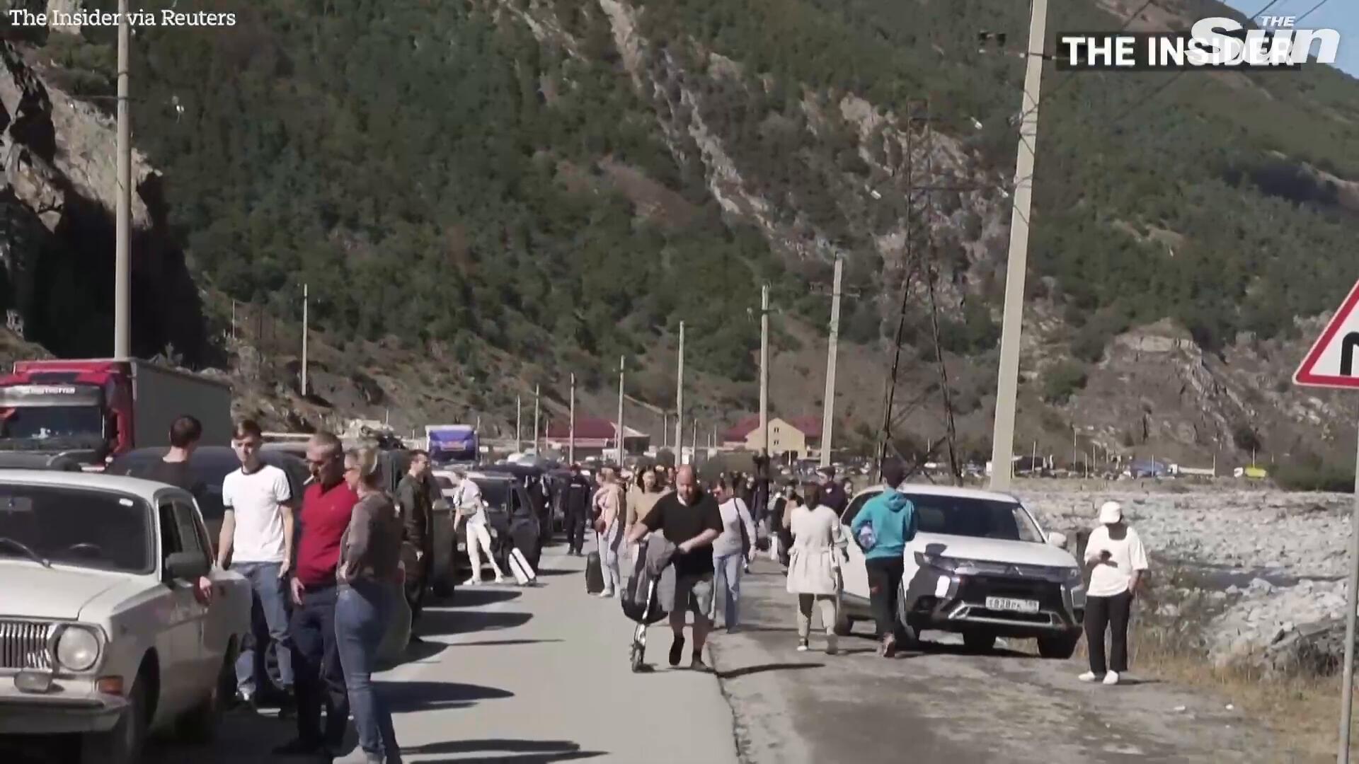 Drone footage shows HUGE queues of cars leaving Russia for Georgia after 'mobilisation plans'