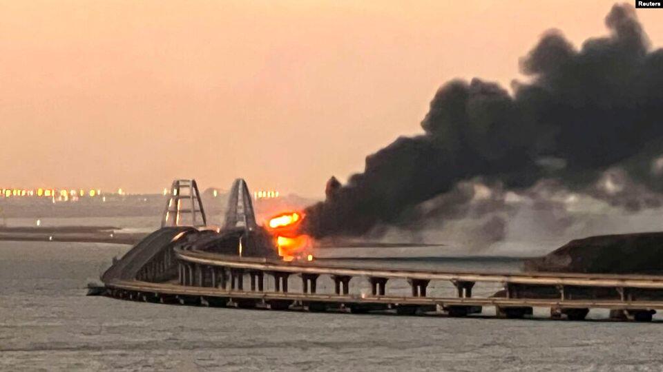 Большой пожар на Крымском мосту – о нём сообщают и публикуют видео российские СМИ. По предварительной информации в районе 6 часов утра загорелся вагон товарного поезда с цистерной с топливом. Есть ли какая-то дополнительная информация о Крымском мосту, а также в целом о ситуации на Юге страны – спросим у спикера Одесской военной администрации Сергея Братчука.