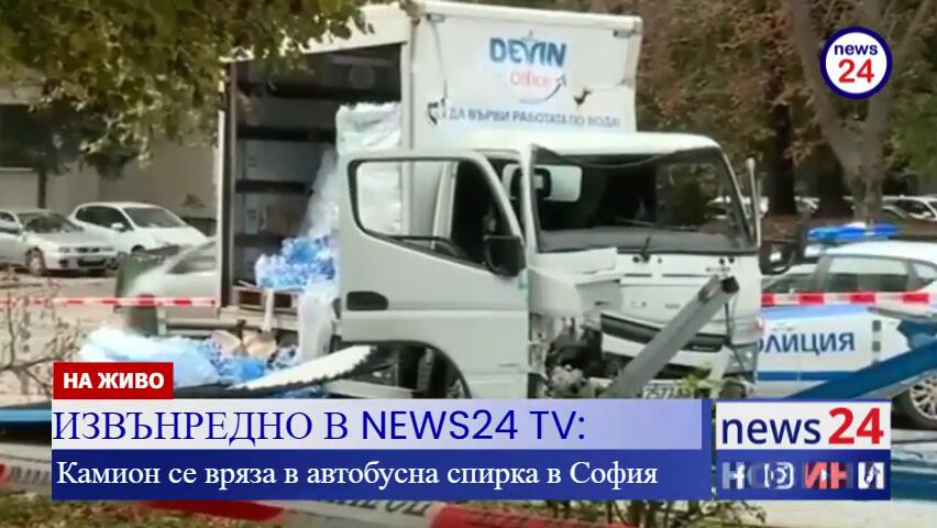 ИЗВЪНРЕДНО В NEWS24 TV: Камион се вряза в автобусна спирка в София
