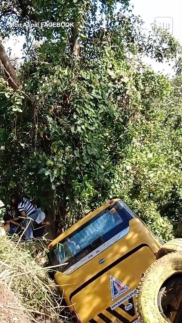 BREAKING: According to the owner of the video Mon Aspa, while on their way home to Quezon City from a seminar, one of their three buses fell off a cliff in Brgy. Tala, Orani, Bataan on Saturday afternoon, November 5, 2022. (Video courtesy of Mon Aspa)
