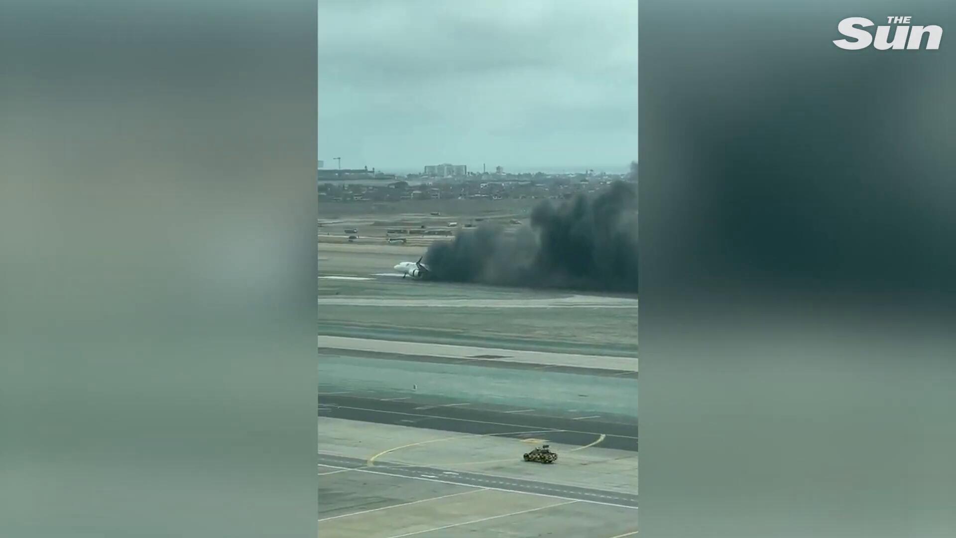 Moment plane crashes into firetruck during takeoff at Lima airport