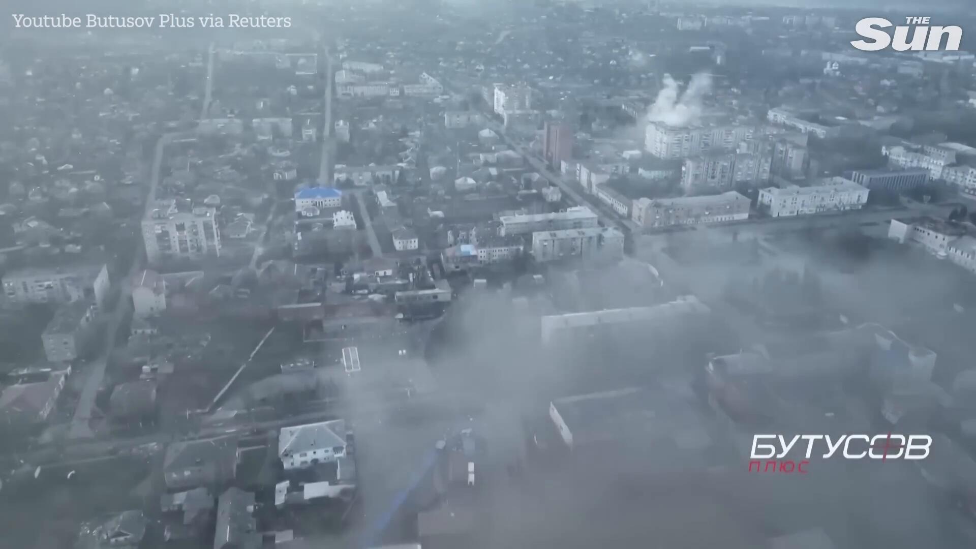 Drone video shows battle raging between Russia and Ukraine in Bakhmut