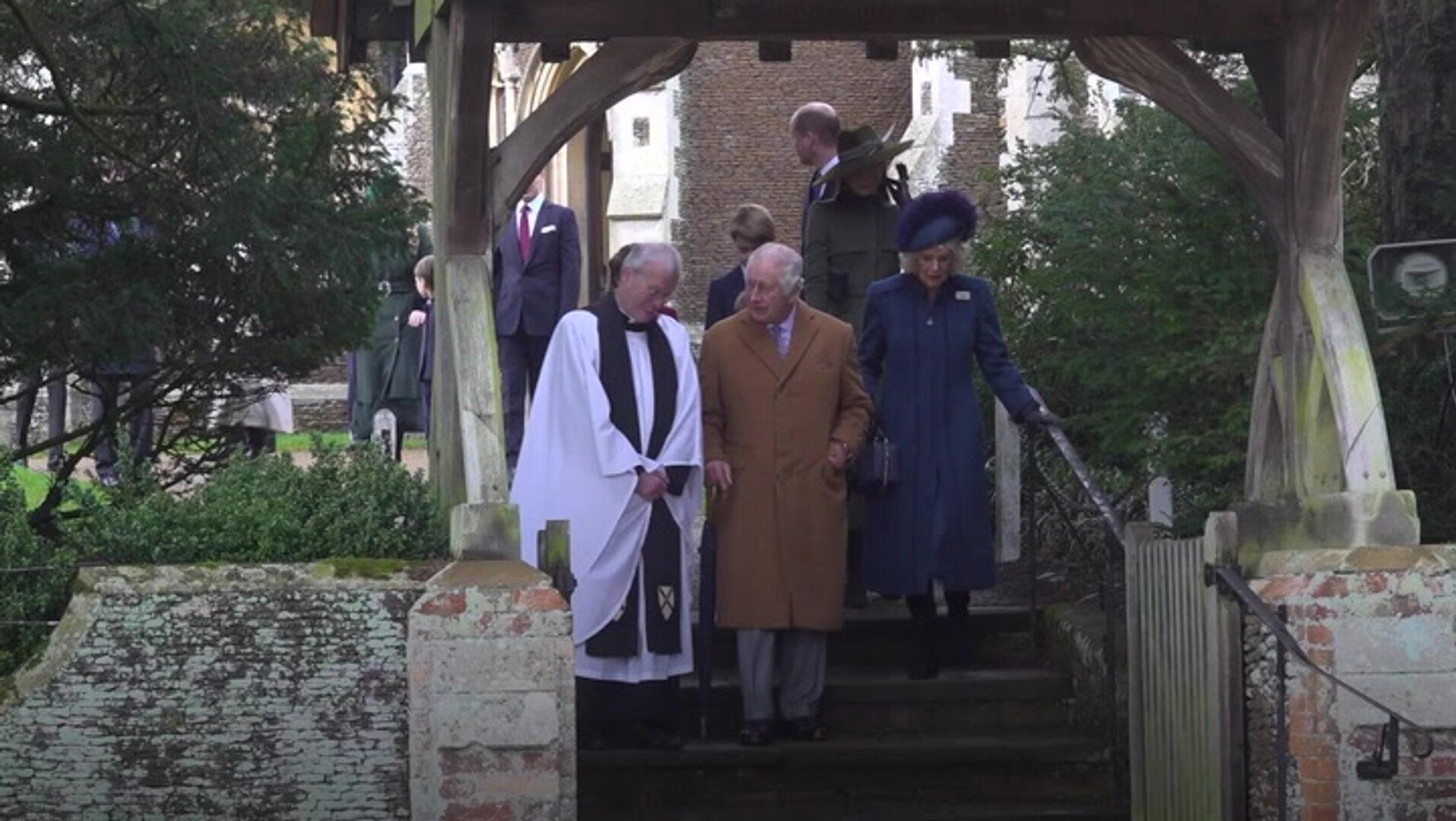 King Charles III and other senior members of the royal family attended the Christmas Day service at Sandringham church. This footage shows the King, along with Queen consort Camilla and the Prince and Princess of Wales and their children, as they left the service. They greeted well-wishers who had gathered to wish them a Merry Christmas outside St Mary Magdalene Church. Prince George, Princess Charlotte, and Prince Louis walked along, hand-in-hand with their mother. Source: PA