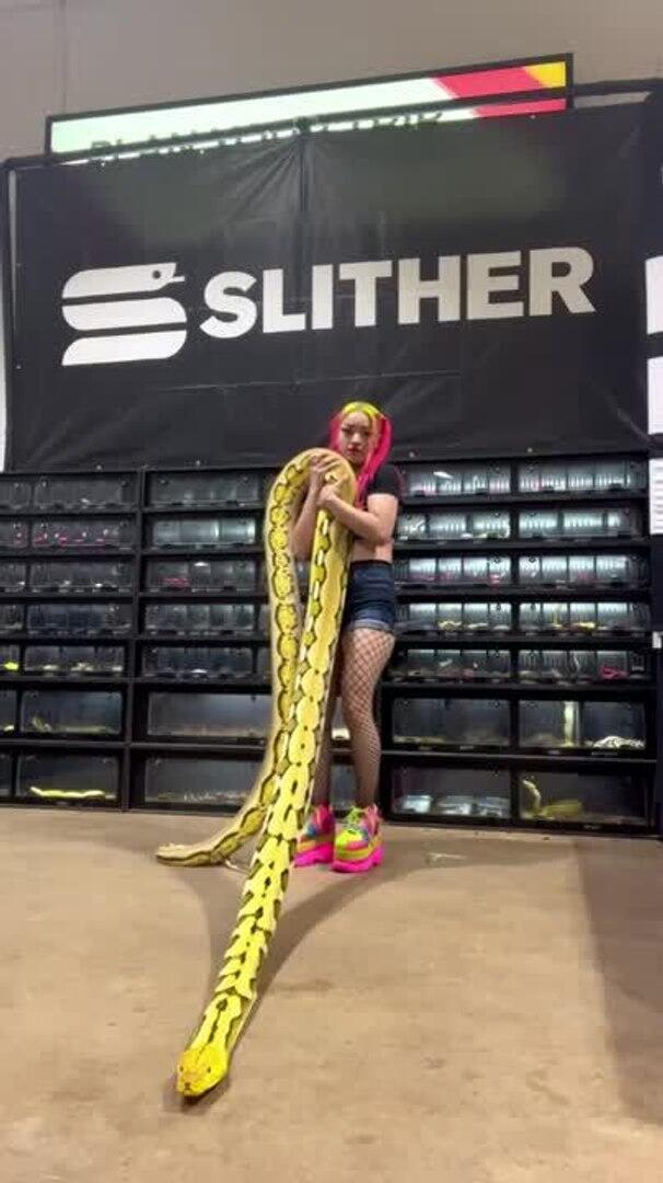 This girl was demonstrating handling a reticulated python in front of a group of spectators who had never seen one before. She was able to handle it with ease and smoothly.