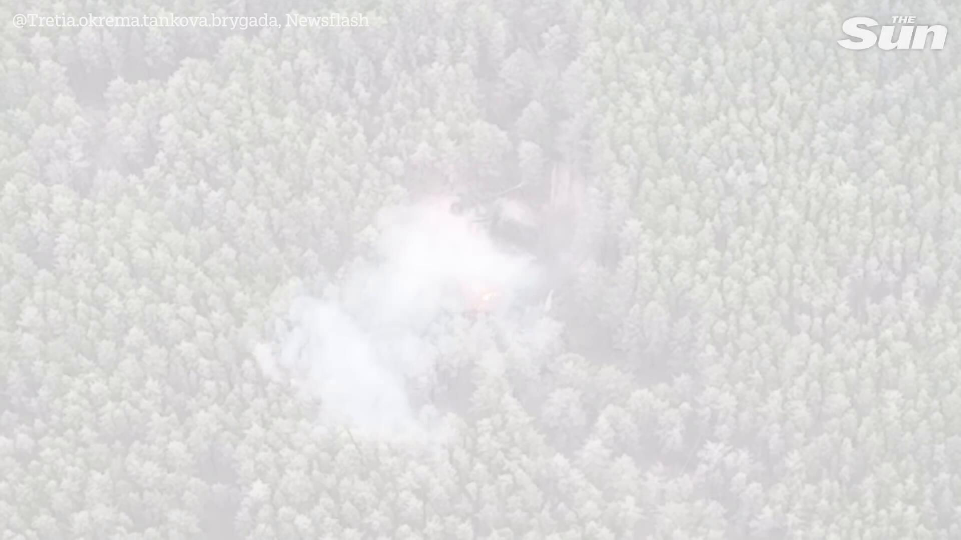 Ukrainian soldiers destroy three Russian tanks and ammo dump hidden in forest