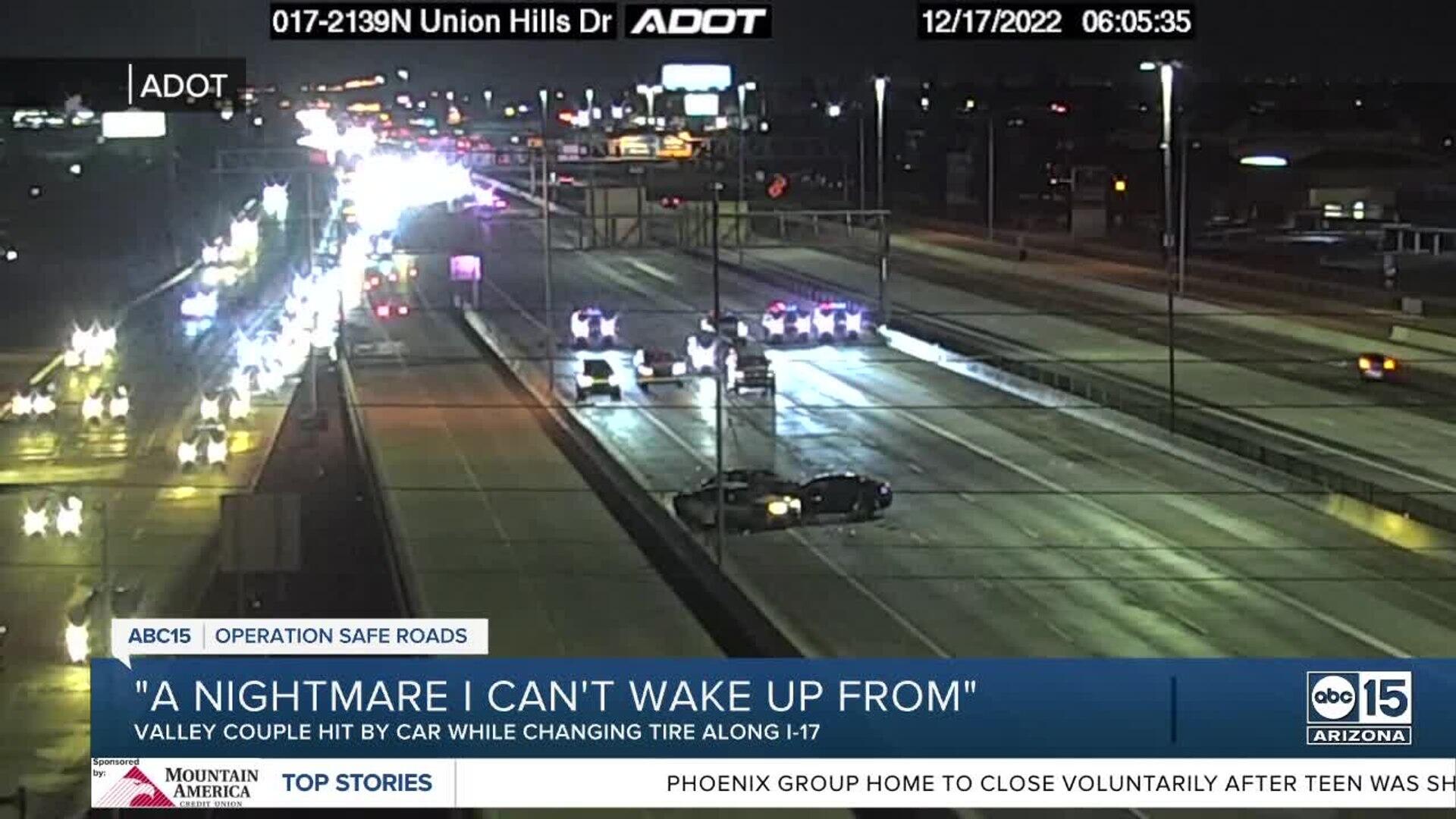 A Valley couple spoke to ABC15 weeks after being hit by a car on the side of the freeway while changing a tire.