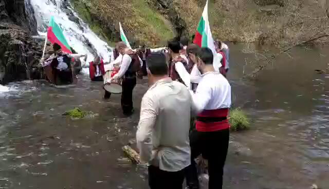 Традиционното мъжко хоро за Богоявление във водопада Докузак в Странджа
