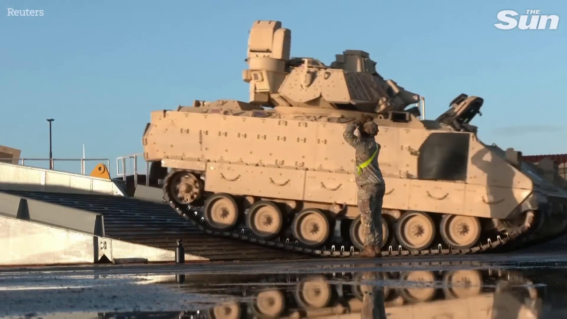 Hundreds of US military vehicles arrive in Dutch port to strengthen NATO defences