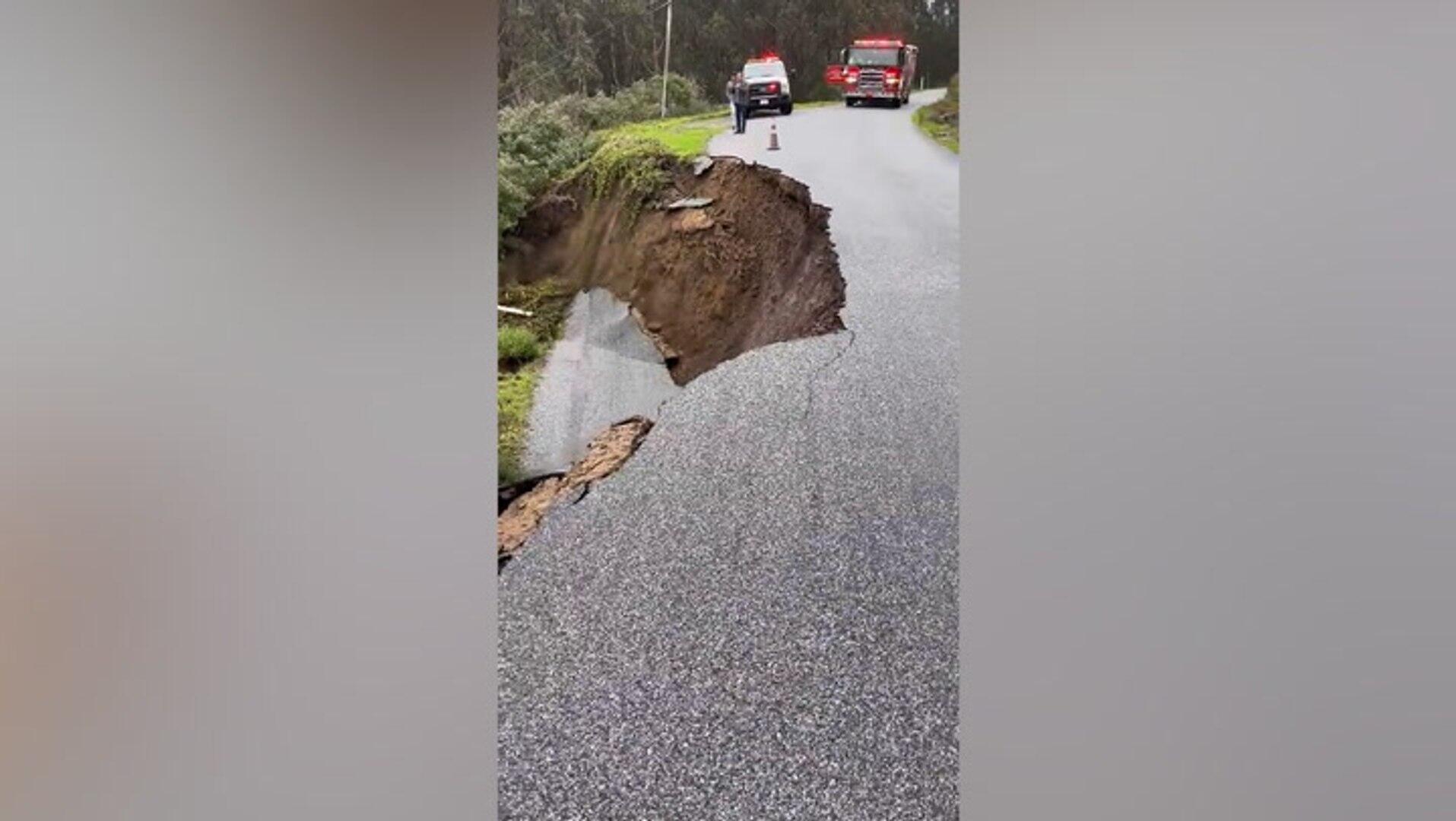 Road collapses in Pescadero following intense California stormsCal Fire CZU