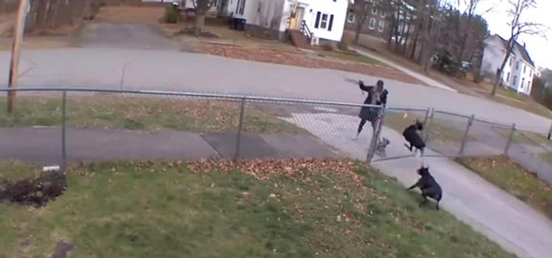 A woman was walking their dog on the sidewalk when two Dobermanns attacked them. Their owners had left the back fence open as they were getting ready to leave the house. When the trained dogs saw the small dog, they attacked them through the front gate. However, she saved her dog while the Dobermanns' owners also came to the rescue.