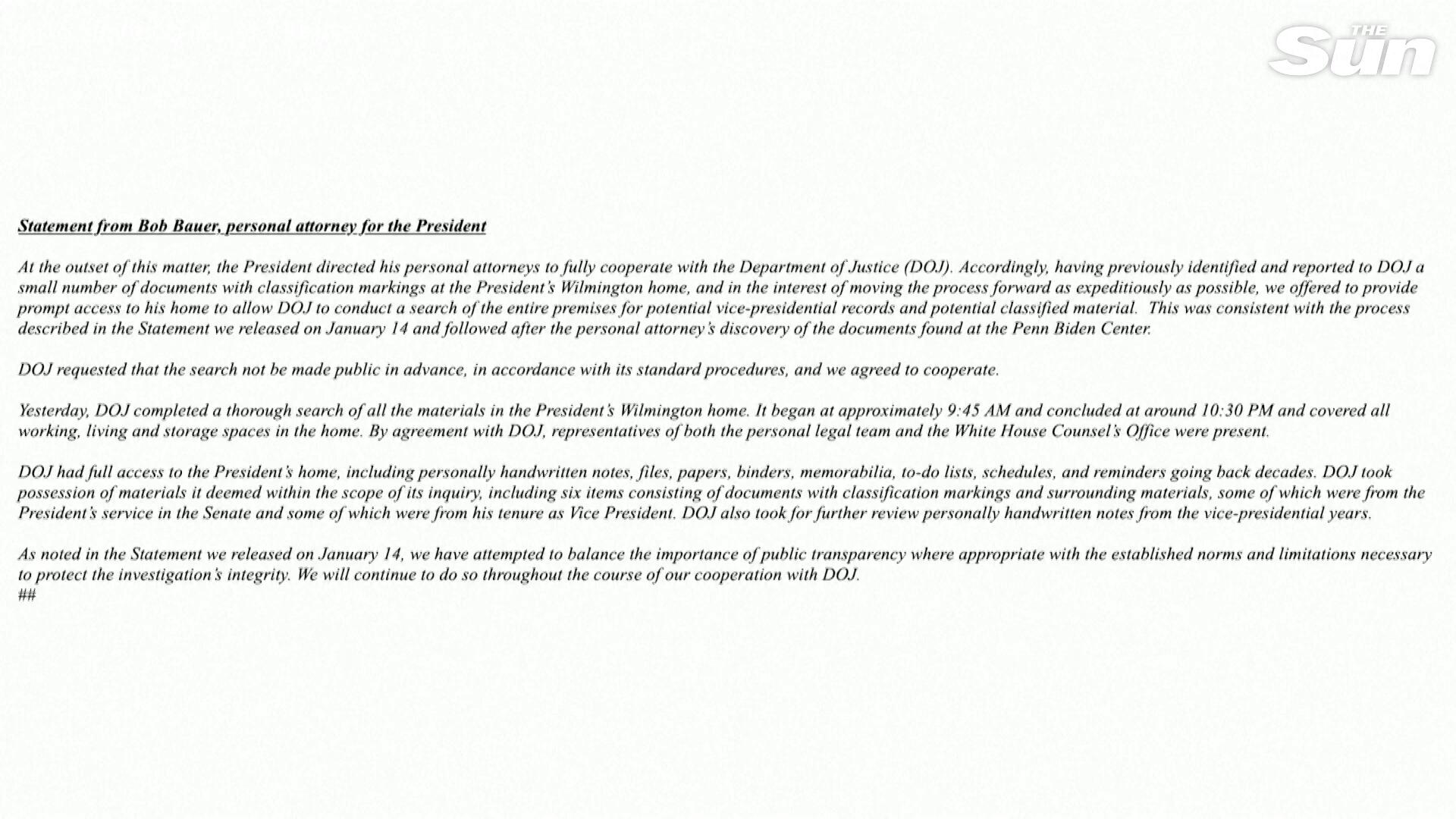 U.S. Justice Dept finds more classified items in Biden home search