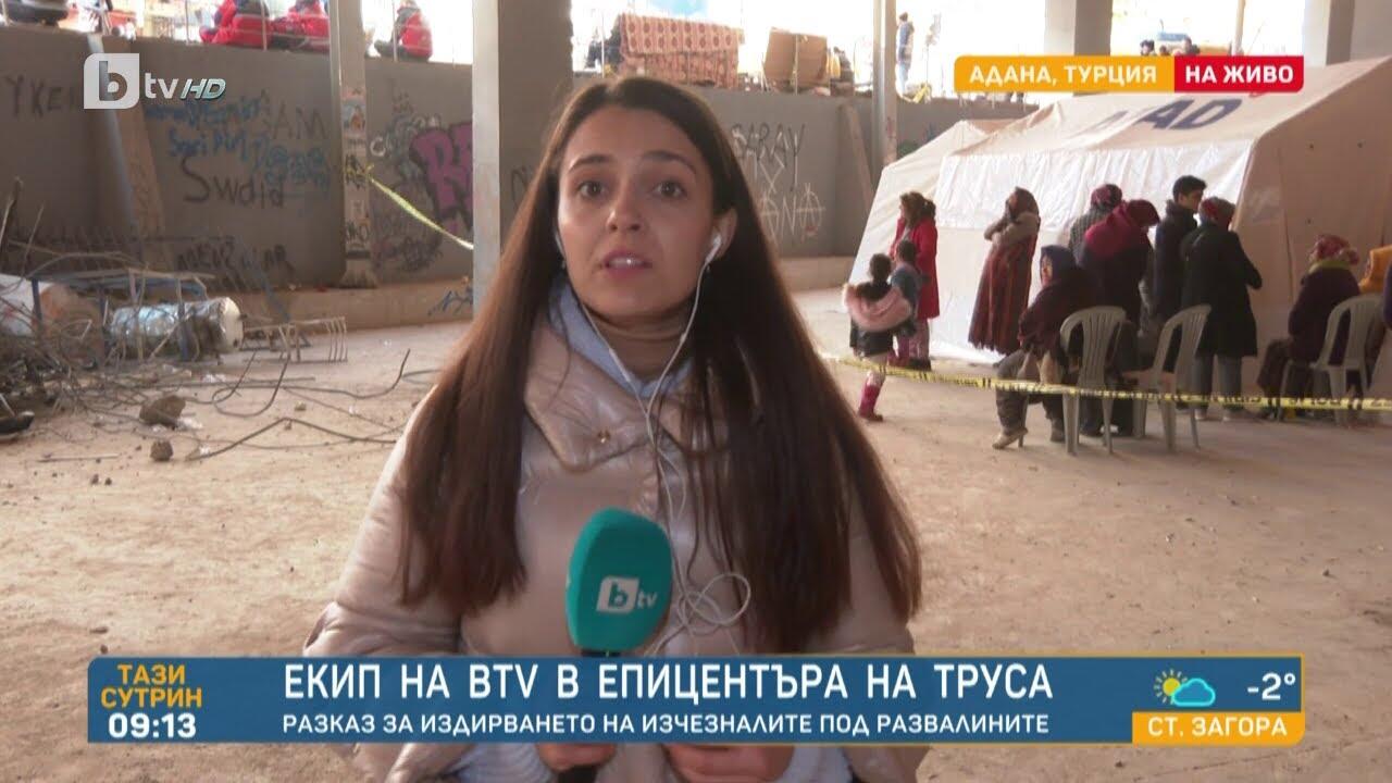 Повече от 1600 са загиналите, а над 11 100 са пострадалите след земетресението в Турция. Сринати до основи сгради, а хората се топлят на улицата с огън – това видя екипът на bTV, който пристигна късно снощи в епицентъра на вчерашните силни земетресения в Турция, а именно в Адана.